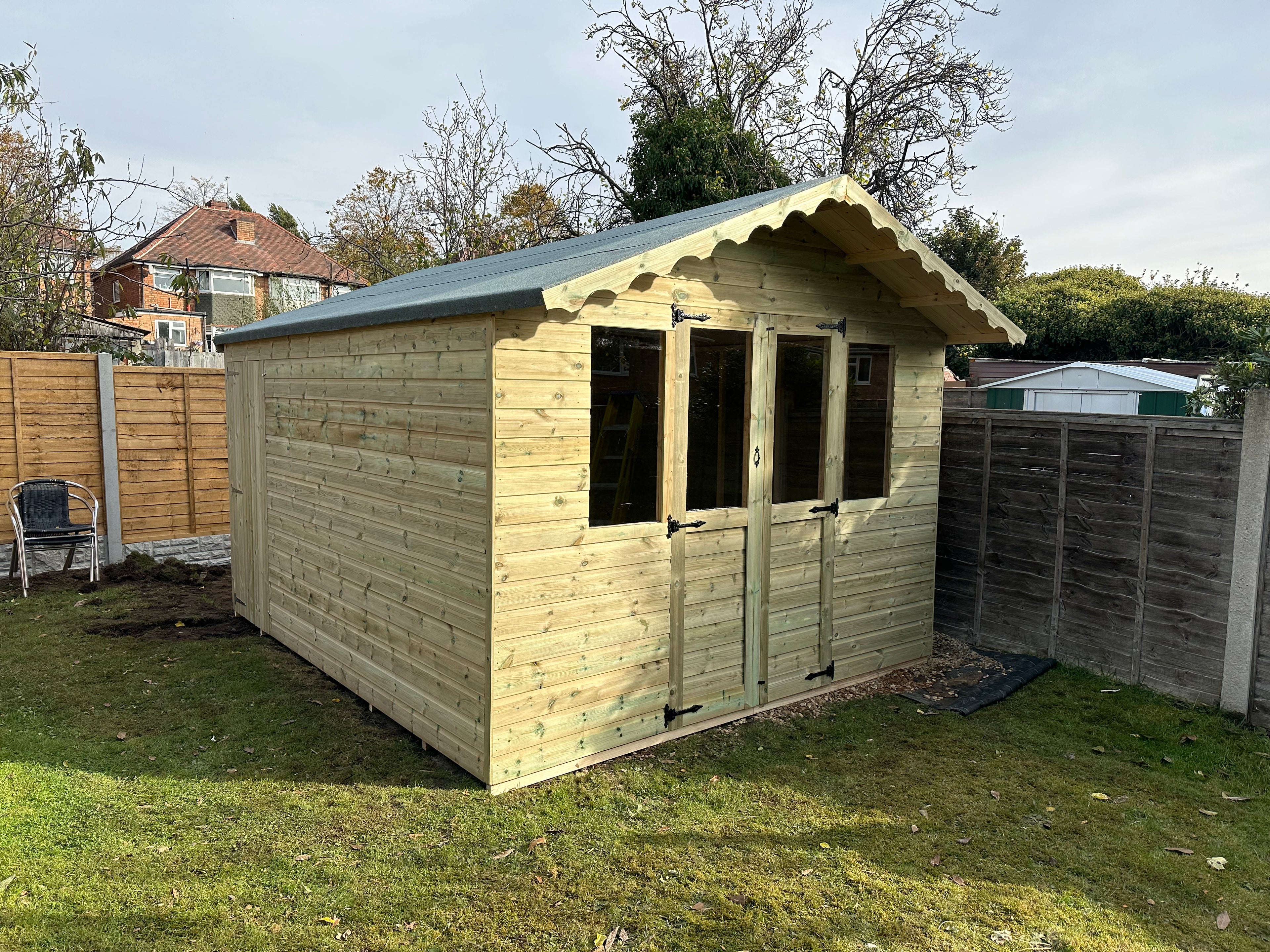 "Ordered a 10 x 8 apex shed on Wednesday 18th October and it was delivered and erected on Friday 20th October. From start to finish the service was very professional. The guys that fitted it were on time, very quick and obviously knew what they were doing - only took them 45 minutes. Would definitely recommend the company"