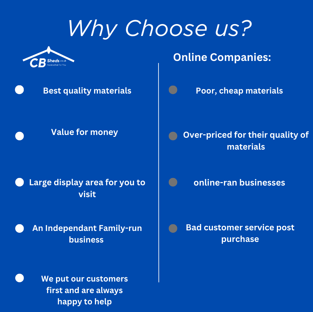 With years of experience in timber sheds and thousands of happy customers, we are proud to be one of the best shed companies based in the West Midlands.
