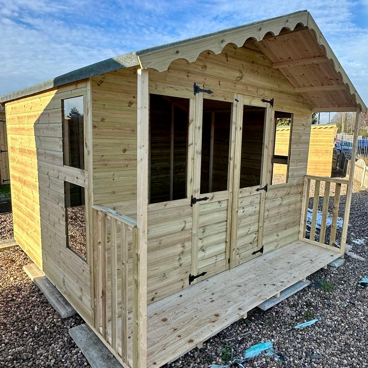 All of our sheds are treated with an anti-fungal pressure treatment, however we recommend an oil-based treatment when you receive it.